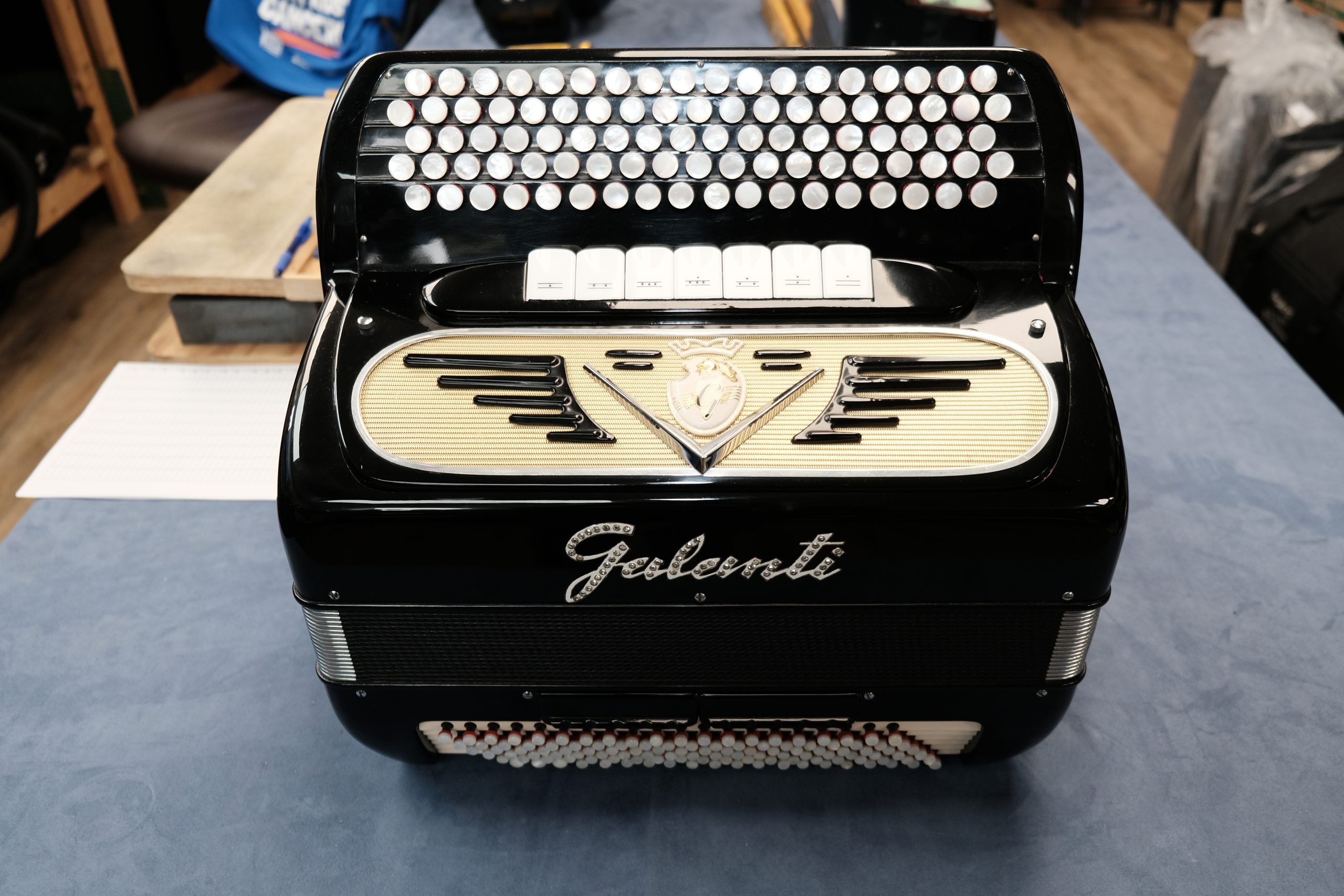 In excellent condition. 5 row B system Chromatic Accordion with 4/5 sets of reeds. LMMM Strong musette tuning. Lovely tone..